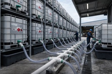 - Filling stations for acids, alkalis, and solvents